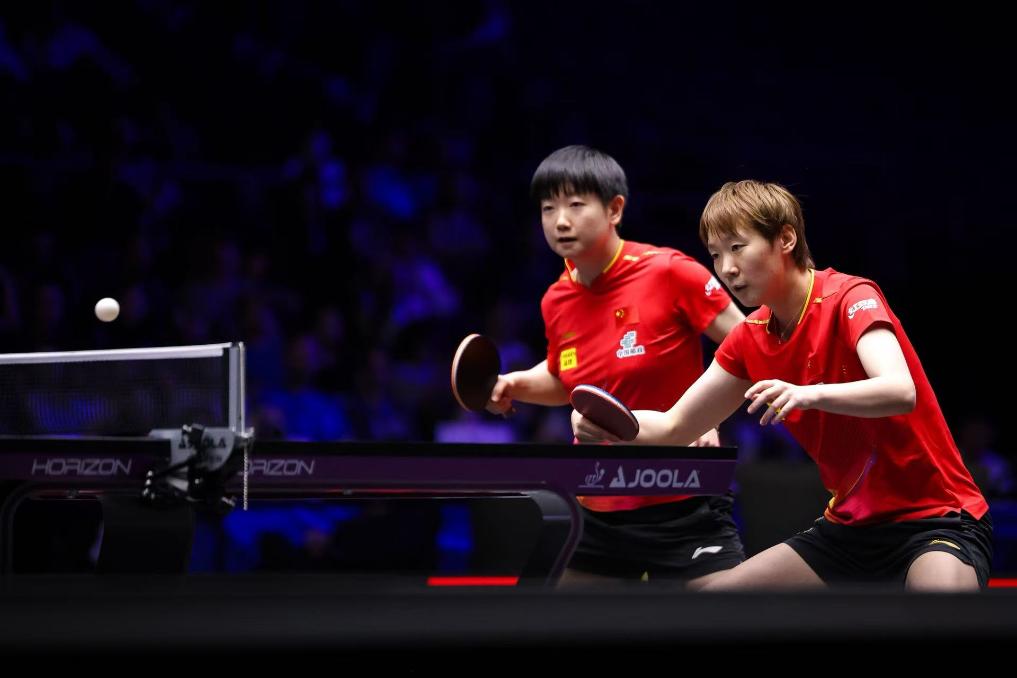 女双决赛在两对国乒组合之间展开,双方首局就展开激战,孙颖莎/王曼昱以16:14艰难赢下,随后王艺迪/蒯曼以11:5和11:6连赢两局。第四局,孙颖莎/王曼昱以11:8将比赛拖入决胜局。决胜局中,王艺迪/蒯曼在6:9落后的不利局面下连得5分,强势逆转,锁定女双冠军。