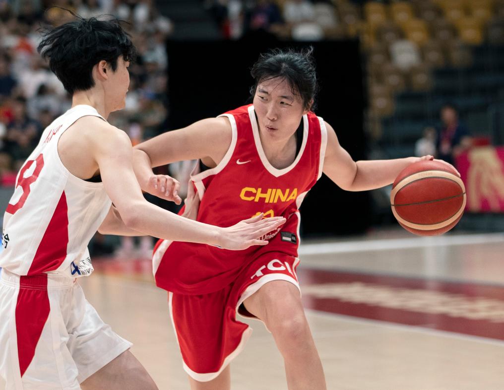 2023年6月28日,中国队球员李缘(前右)在比赛中防守韩国队球员李京恩。新华社发(胡泾辰摄)