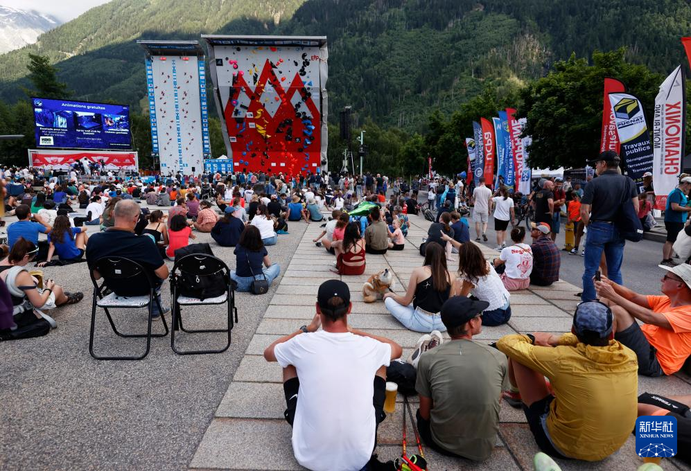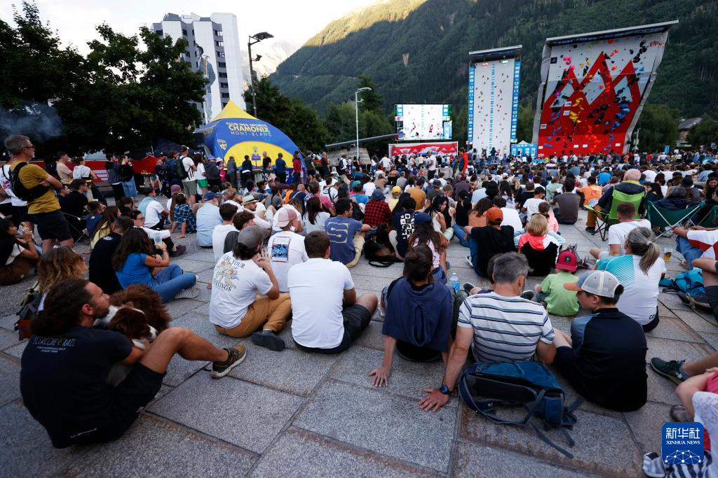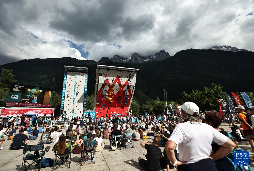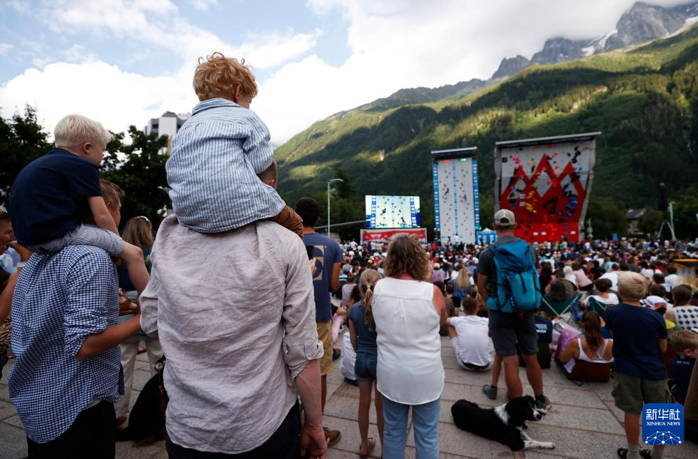 7月11日,人们在法国霞慕尼观看2025攀岩世界杯速度资格赛。