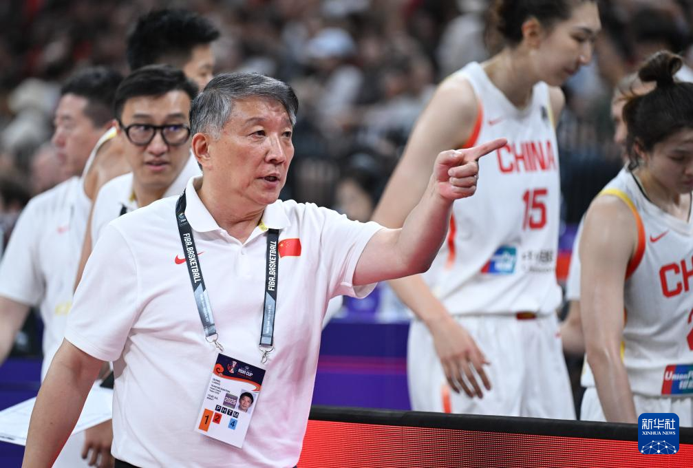 7月13日,中国队主教练宫鲁鸣(左)在比赛间隙与队员贾赛琪交流。