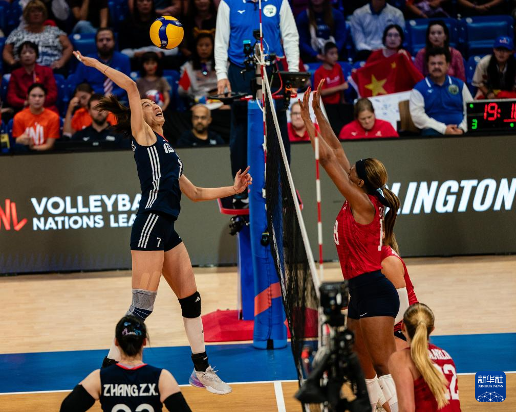 当日,在美国得州阿灵顿举行的2025世界女排联赛分站赛中,中国队3比2战胜美国队。