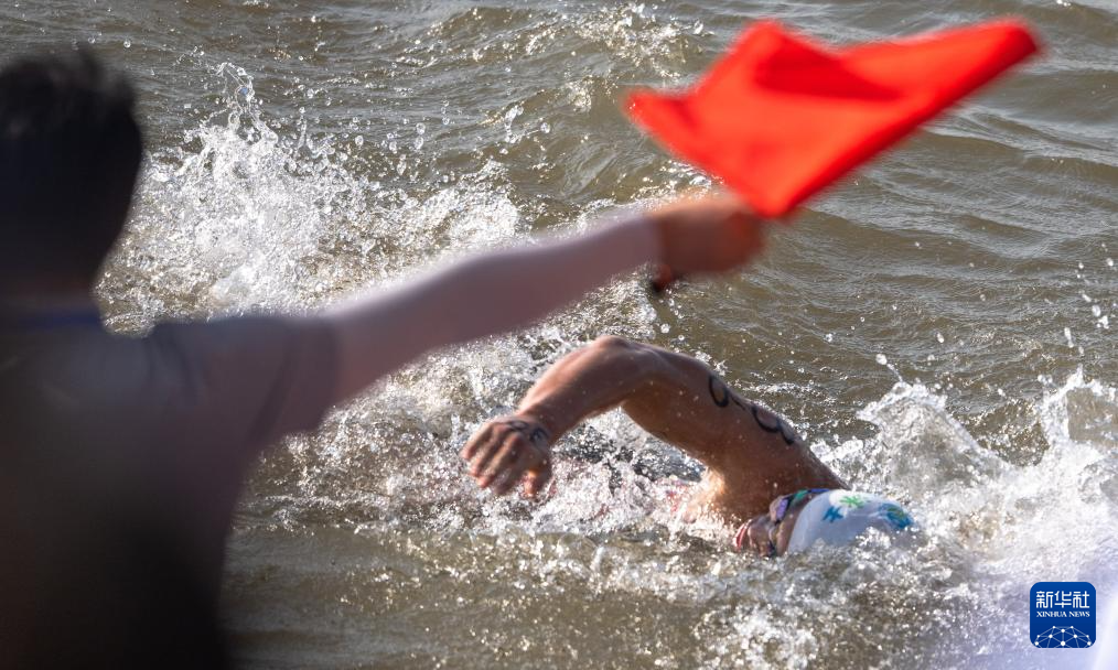 7月16日,选手们横渡长江。新华社记者 杜子璇 摄