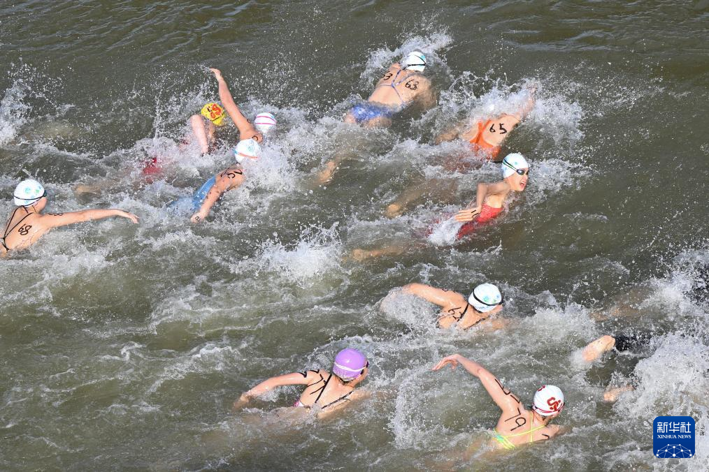7月16日,参加女子抢渡赛的选手们在比赛中。新华社记者 杜子璇 摄