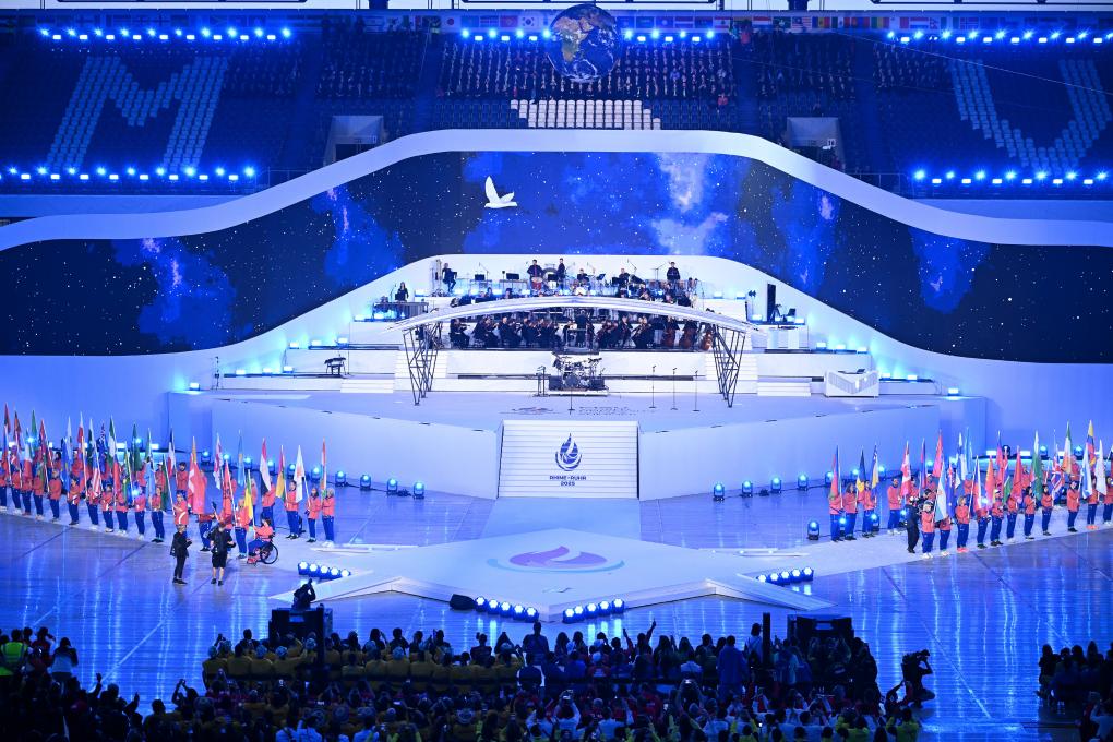 新华社德国杜伊斯堡7月16日电(记者韦骅、张荣锋)雨势渐息,天空放晴。16日晚,在数万名观众见证下,2025年莱茵-鲁尔世界大学生夏季运动会在杜伊斯堡开幕。