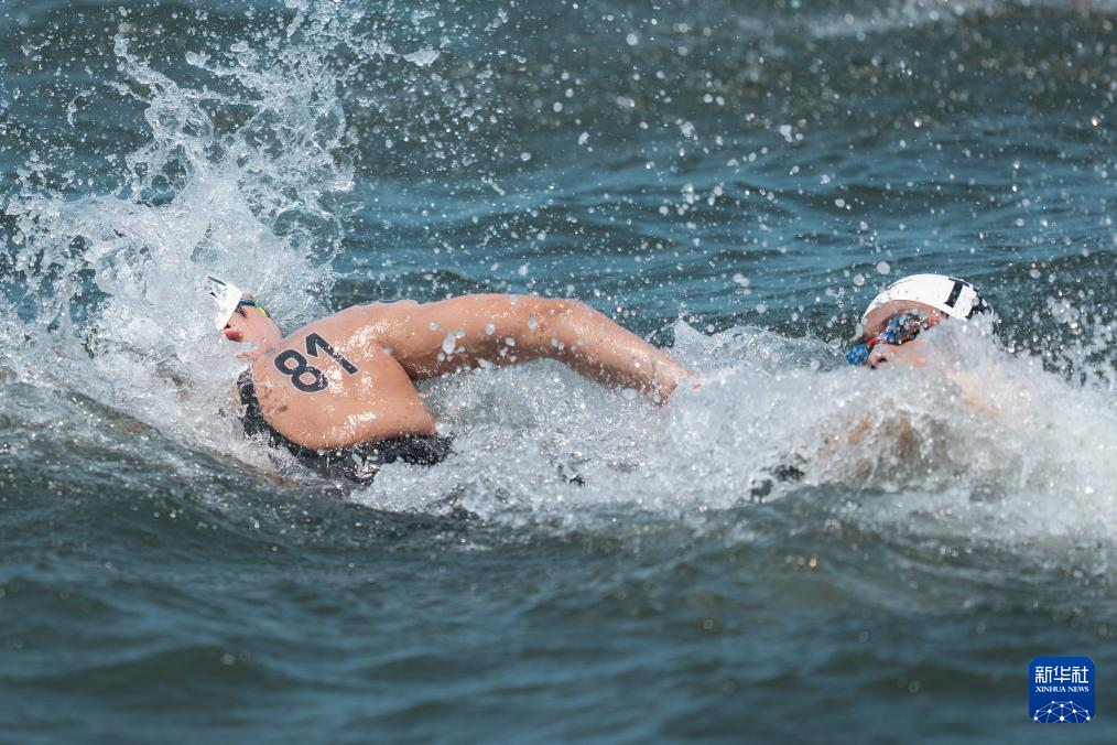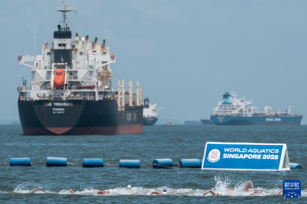当日,2025年世界游泳锦标赛公开水域男子10公里决赛在新加坡举行。