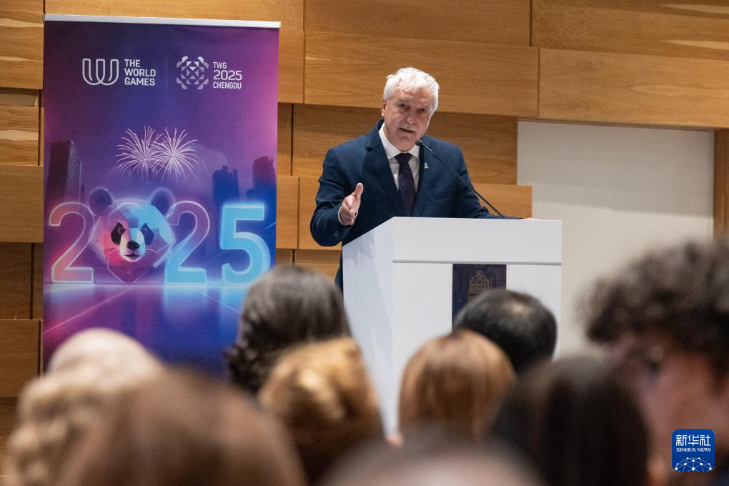 7月17日,匈牙利竞技体育协会主席梅萨罗什·亚诺什在匈牙利代表团誓师大会上致辞。新华社发(弗尔季·奥蒂洛摄)