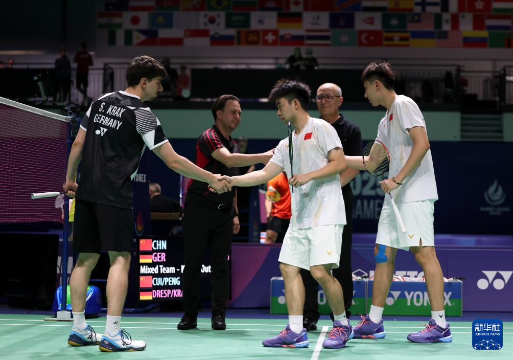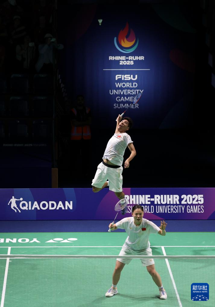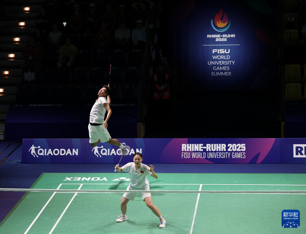 当日,在德国米尔海姆举行的2025年莱茵-鲁尔世界大学生夏季运动会羽毛球混合团体八分之一决赛中,中国队3比0战胜德国队,晋级八强。
