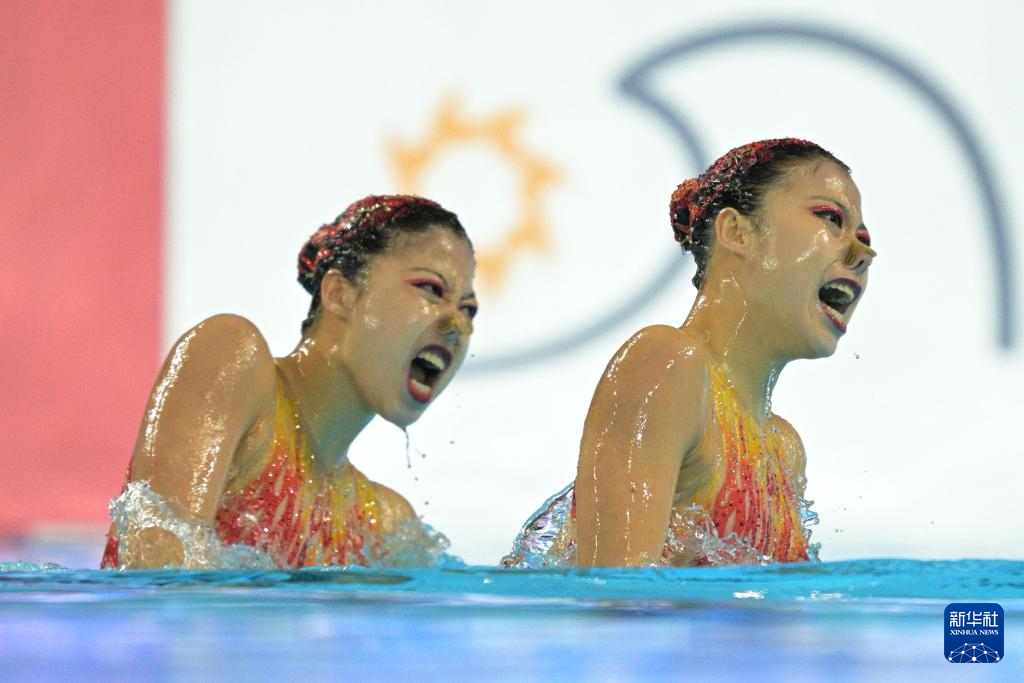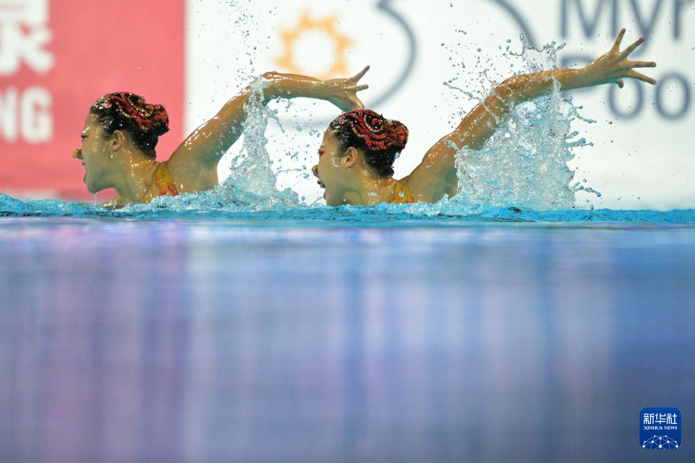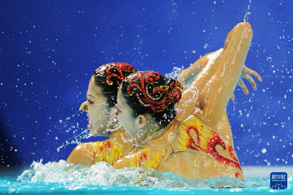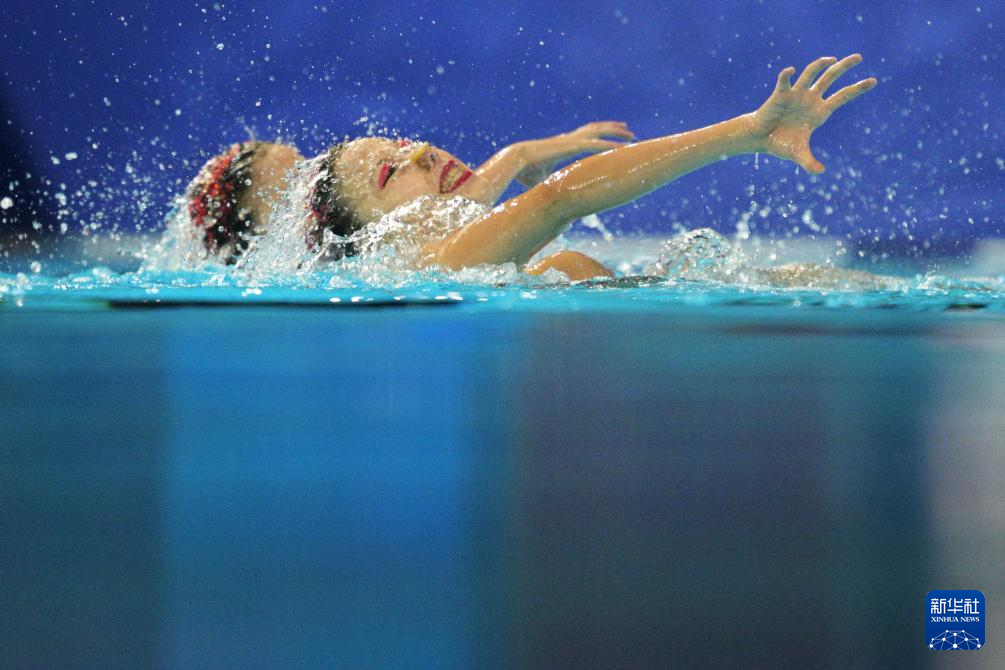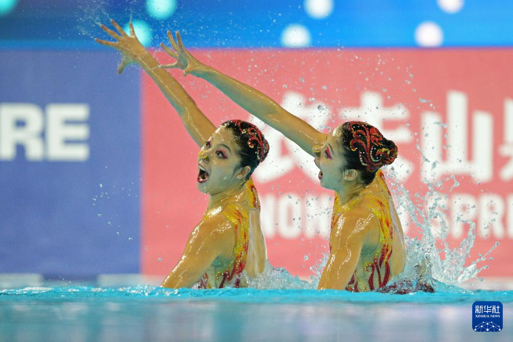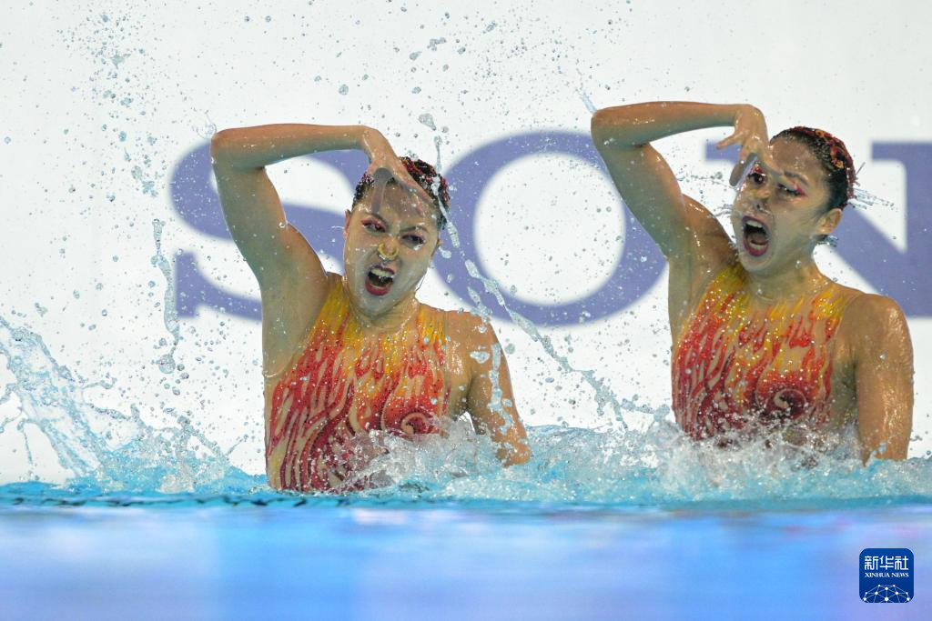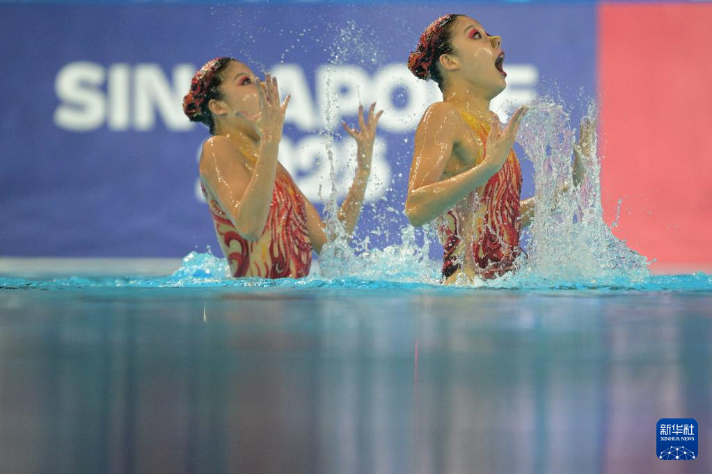 当日,2025年世界游泳锦标赛花样游泳女子双人技术自选预赛在新加坡举行。