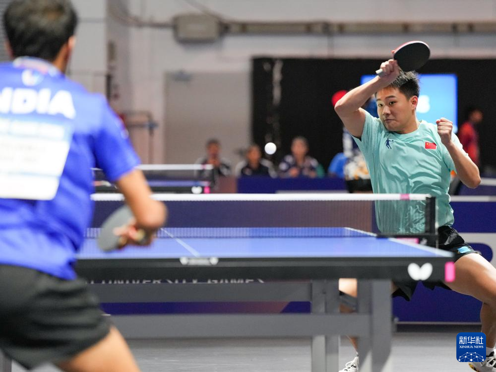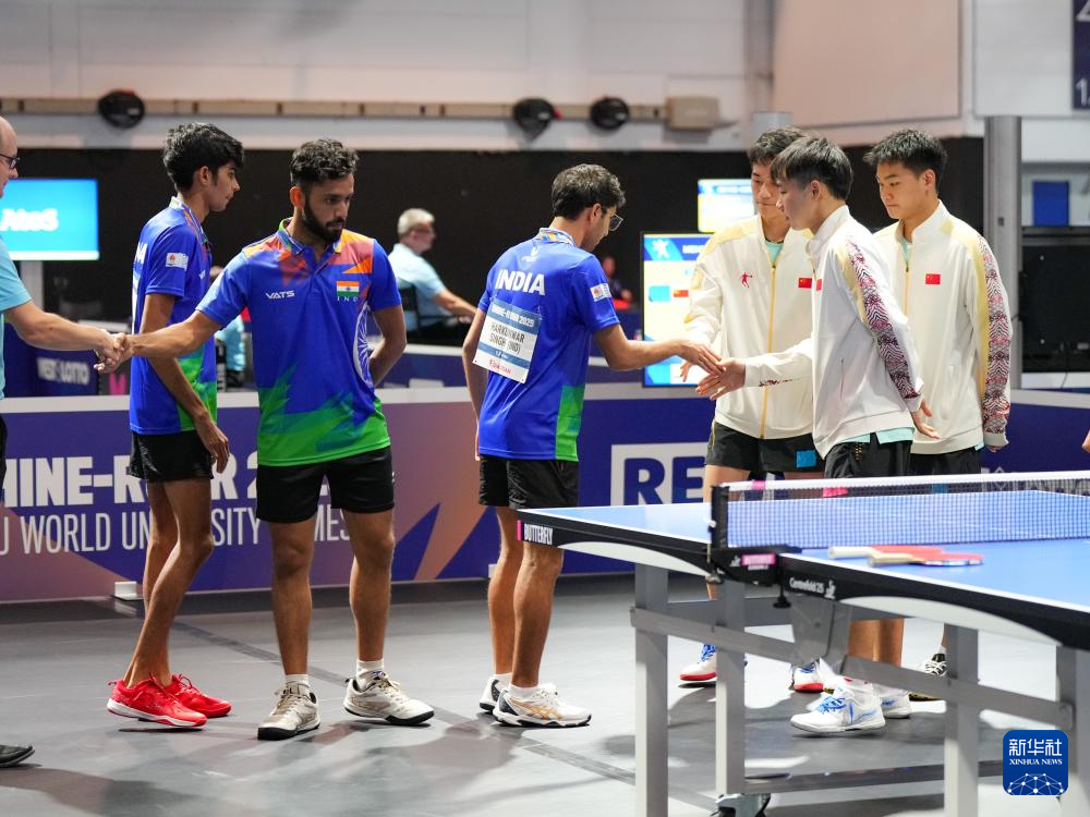 当日,在德国埃森举行的2025年莱茵-鲁尔世界大学生夏季运动会乒乓球男子团体八分之一决赛中,中国队3比0战胜印度队,晋级八强。