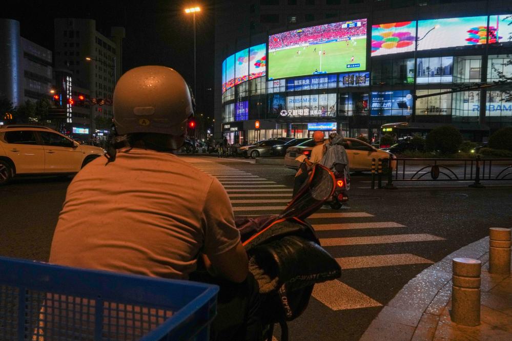6月29日,南通市内多处户外大屏进行“苏超”比赛直播。