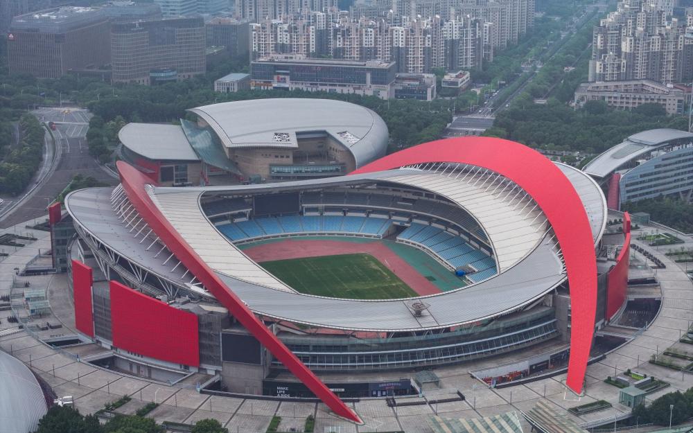 这是6月9日用无人机拍摄的南京奥体中心体育场。