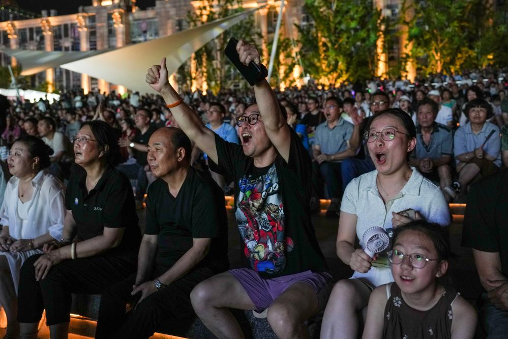 6月29日,市民、球迷在南通环西文化广场观看比赛直播,为球队加油。