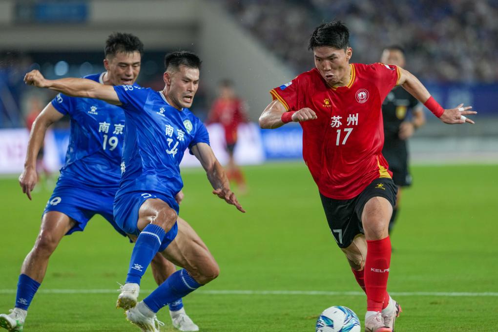 7月5日,“苏超”第六轮南京队与苏州队的比赛在南京奥体中心体育场上演。江苏这个名字,取自“江宁府”(南京旧称)和“苏州府”,这场比赛当之无愧是本轮的焦点战。
