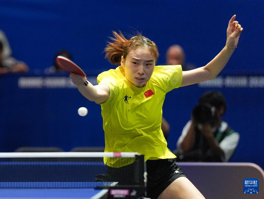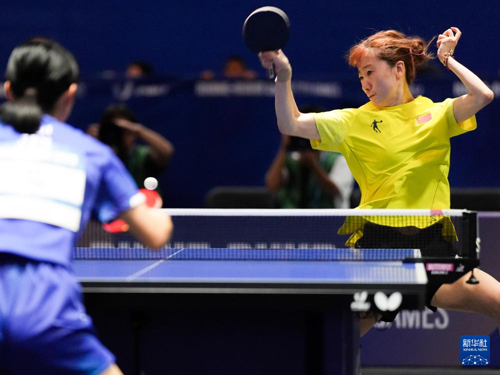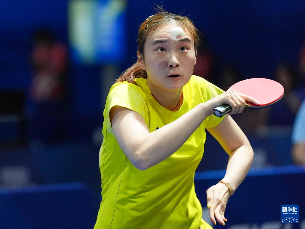 7月20日,中国队选手王晓彤在比赛中回球。新华社记者 王曦 摄