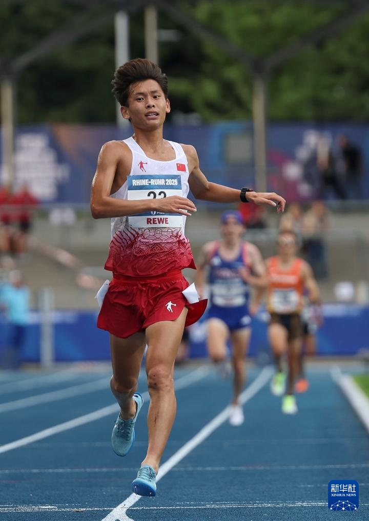 当日,在德国波鸿举行的2025年莱茵-鲁尔世界大学生夏季运动会田径男子10000米决赛中,中国选手王文杰获得第六名。