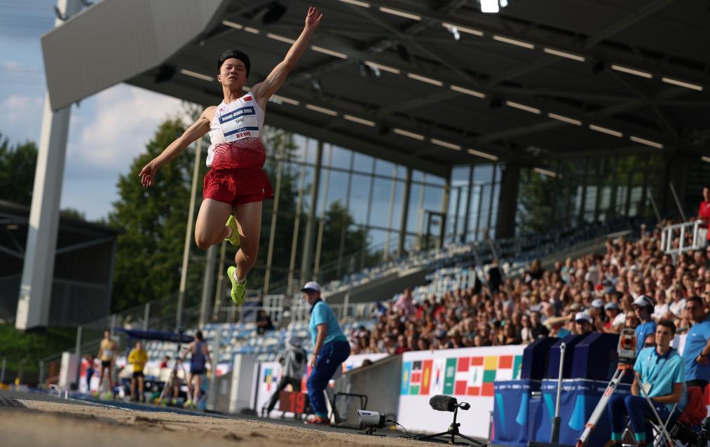 新华社德国波鸿7月24日电(记者韦骅、张荣锋)莱茵-鲁尔大运会田径项目24日进入第四个比赛日的争夺,舒衡在男子跳远比赛中摘金,为中国队赢得在本次大运会田径项目上的首枚金牌。