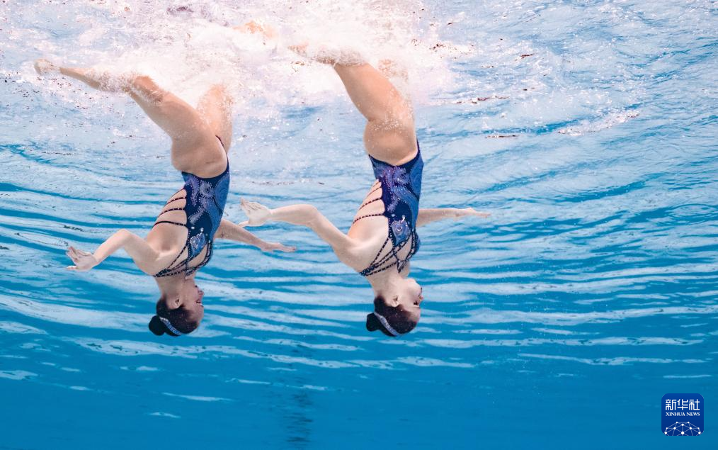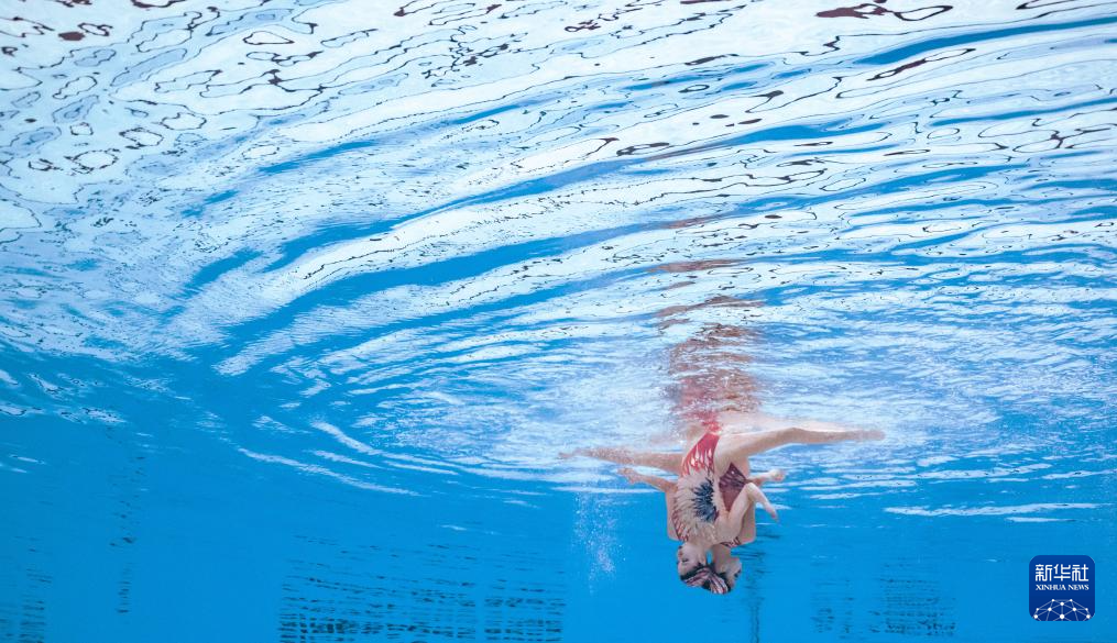 当日,2025年世界游泳锦标赛花样游泳女子双人自由自选决赛在新加坡举行。