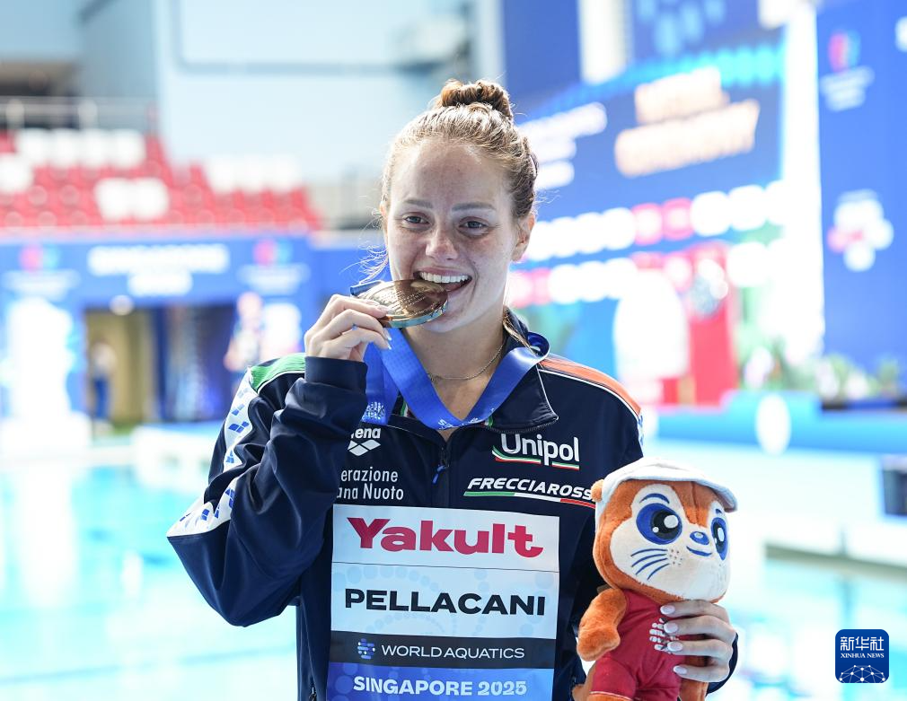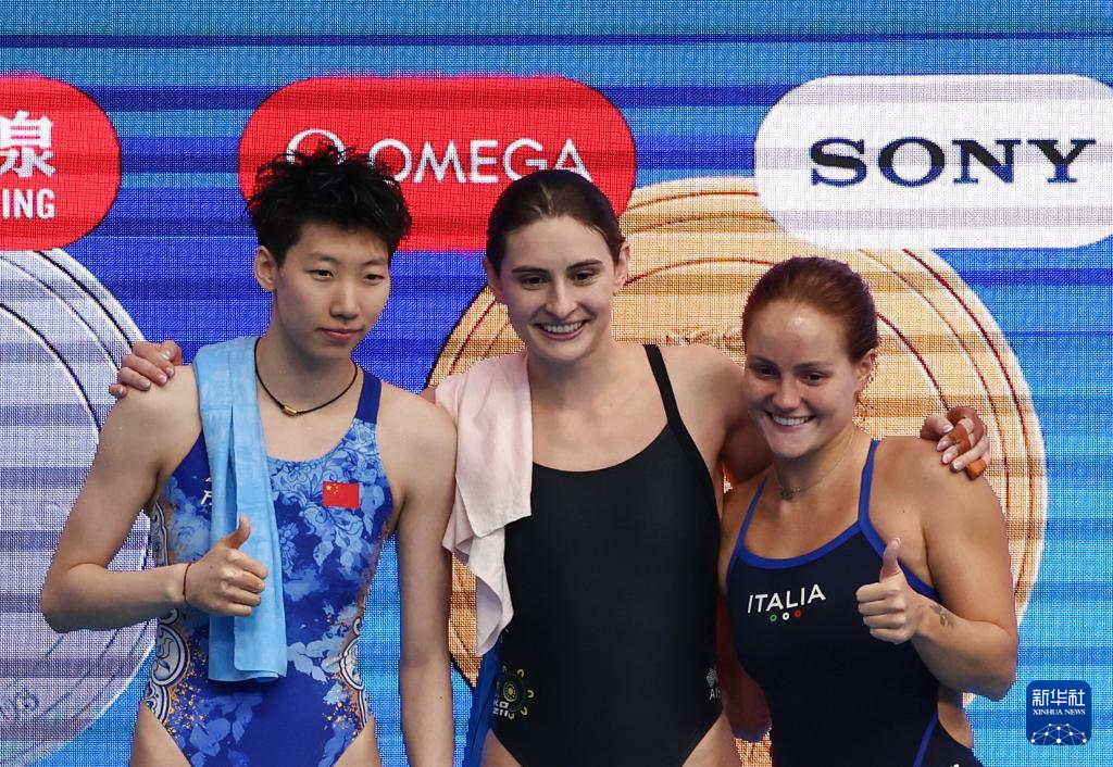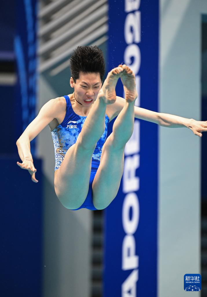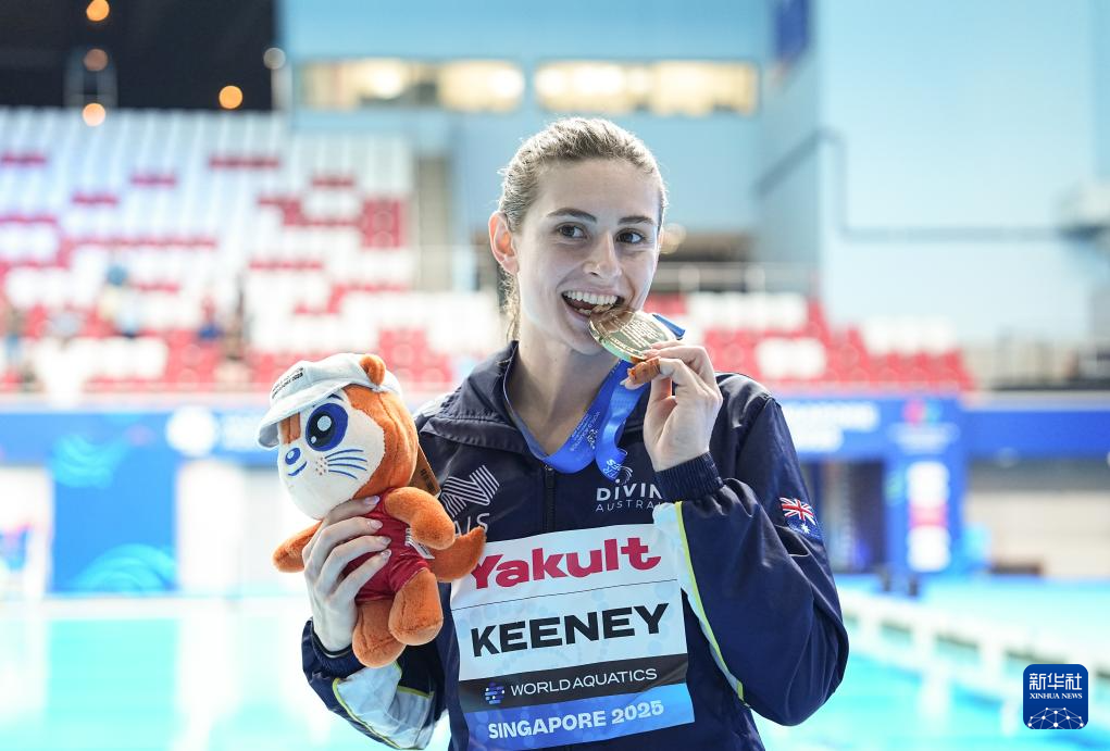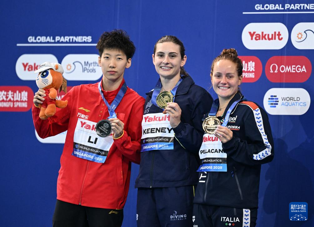 当日,2025年世界游泳锦标赛跳水女子一米板决赛在新加坡举行。