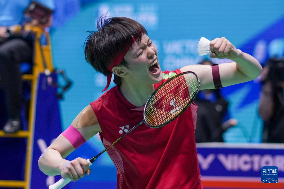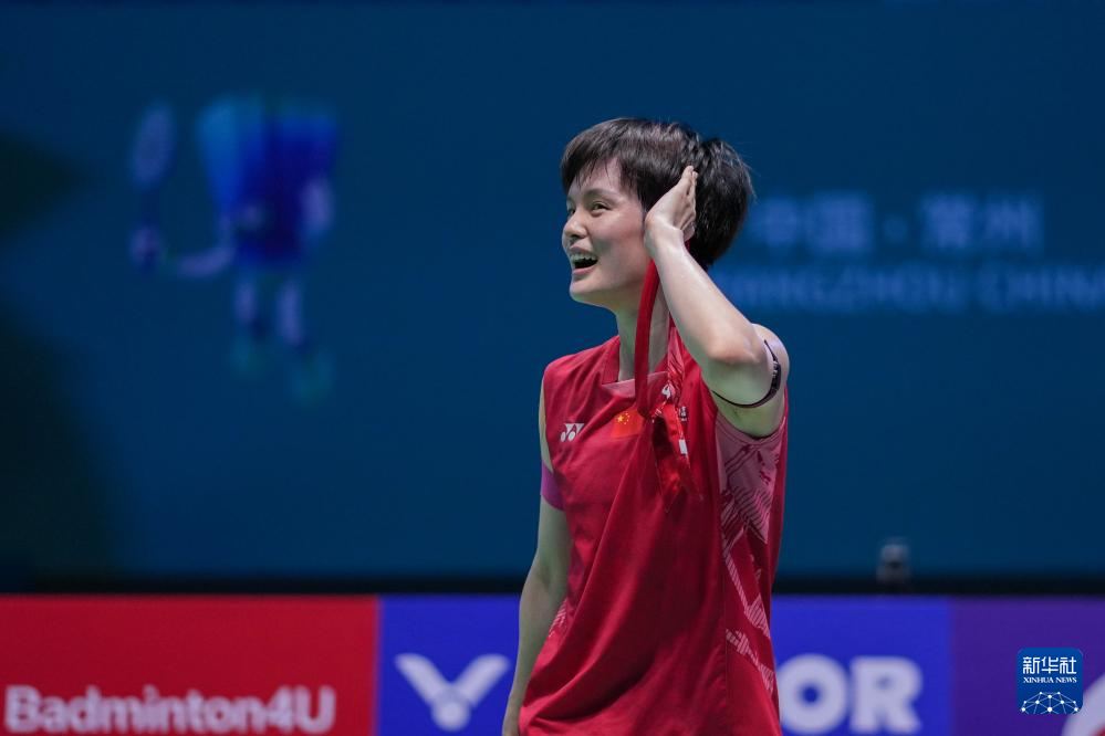 当日,在江苏常州举行的2025中国羽毛球公开赛女单决赛中,中国选手王祉怡以2比0战胜队友韩悦,获得冠军。