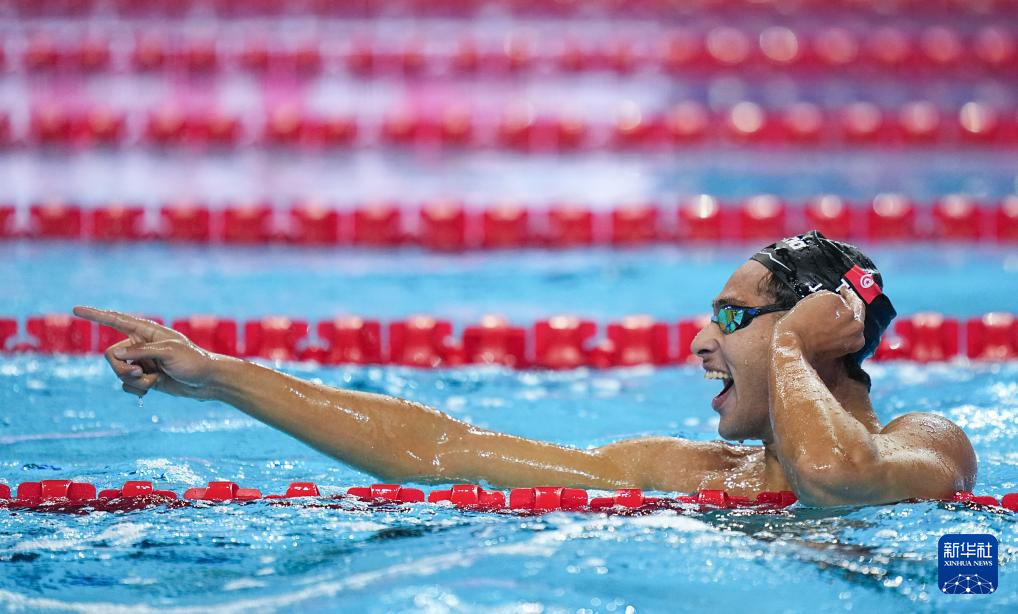 7月30日,突尼斯选手艾哈迈德·贾瓦迪在决赛中,他最终获得冠军。新华社记者 伍志尊 摄