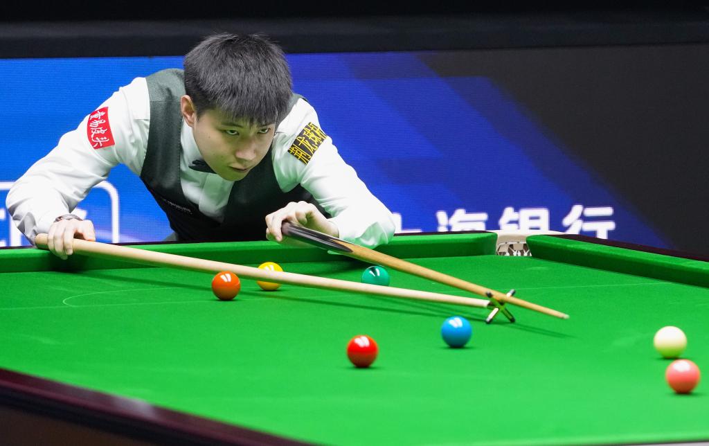 8月2日,赵心童在比赛中击球。新华社记者 丁汀 摄