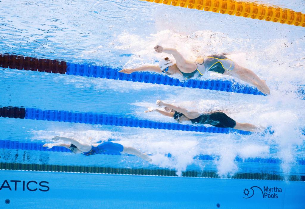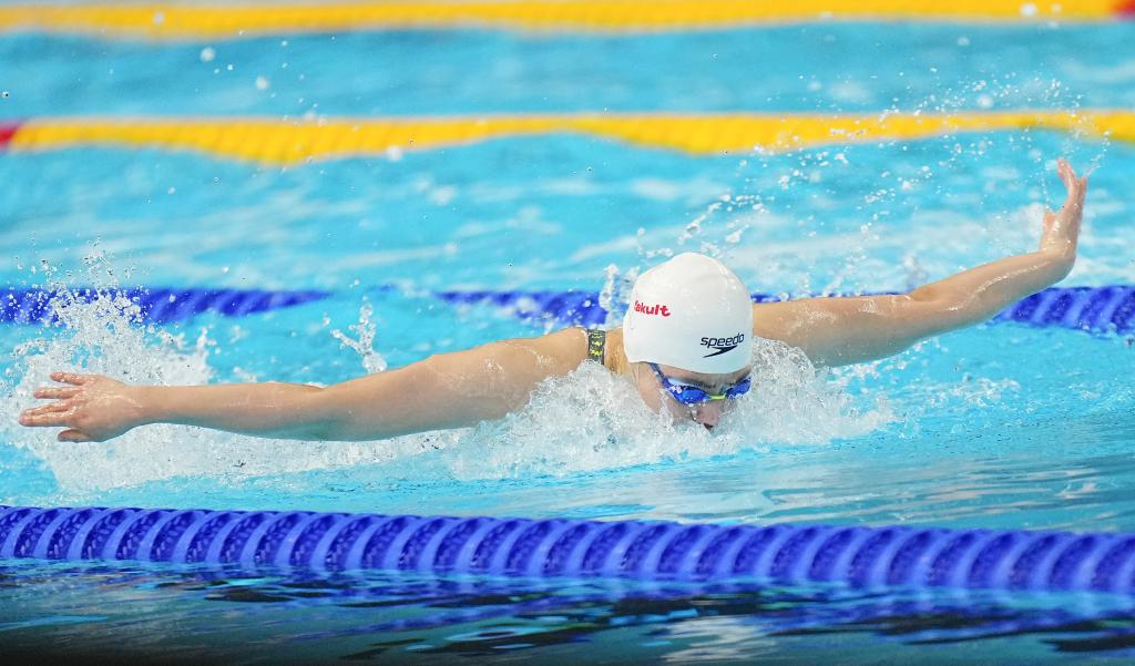 7月28日,张雨霏在2025年世界游泳锦标赛游泳女子100米蝶泳决赛中。新华社记者 夏一方 摄