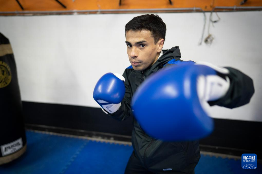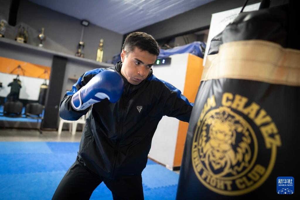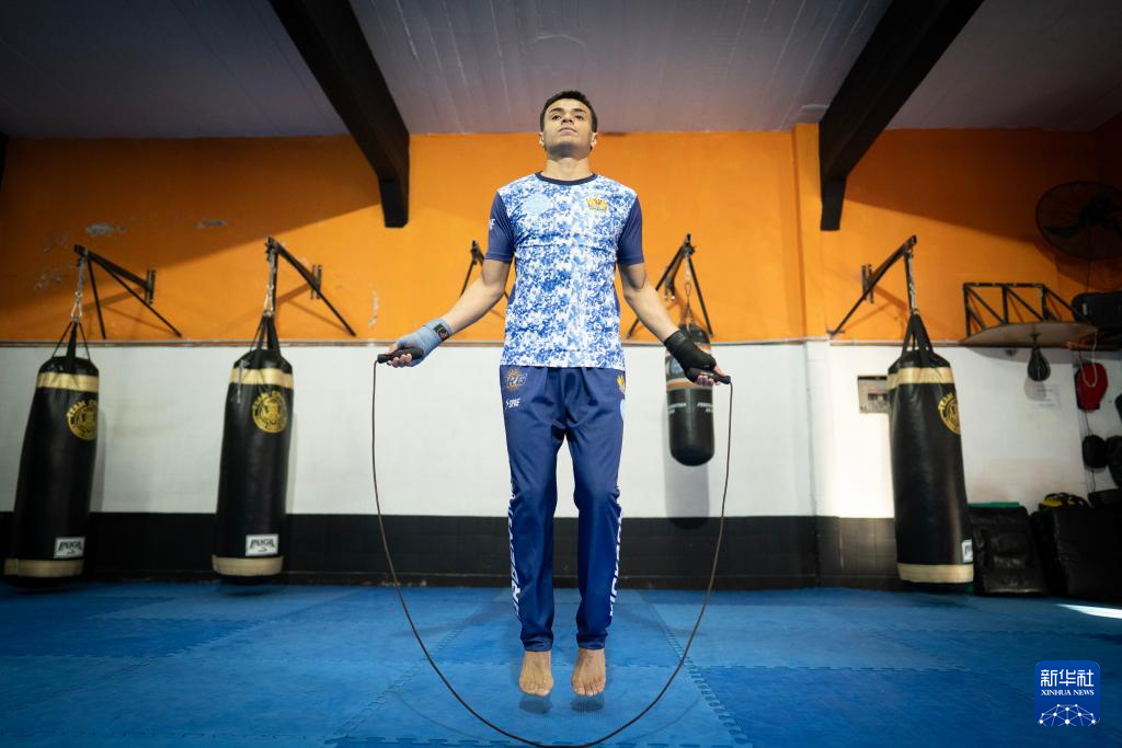 8月5日,在阿根廷布宜诺斯艾利斯,阿根廷自由搏击运动员马蒂亚斯·加西亚在训练。