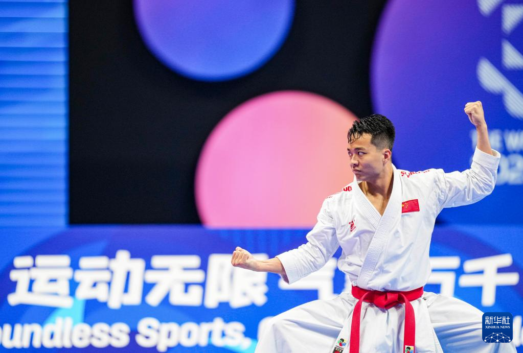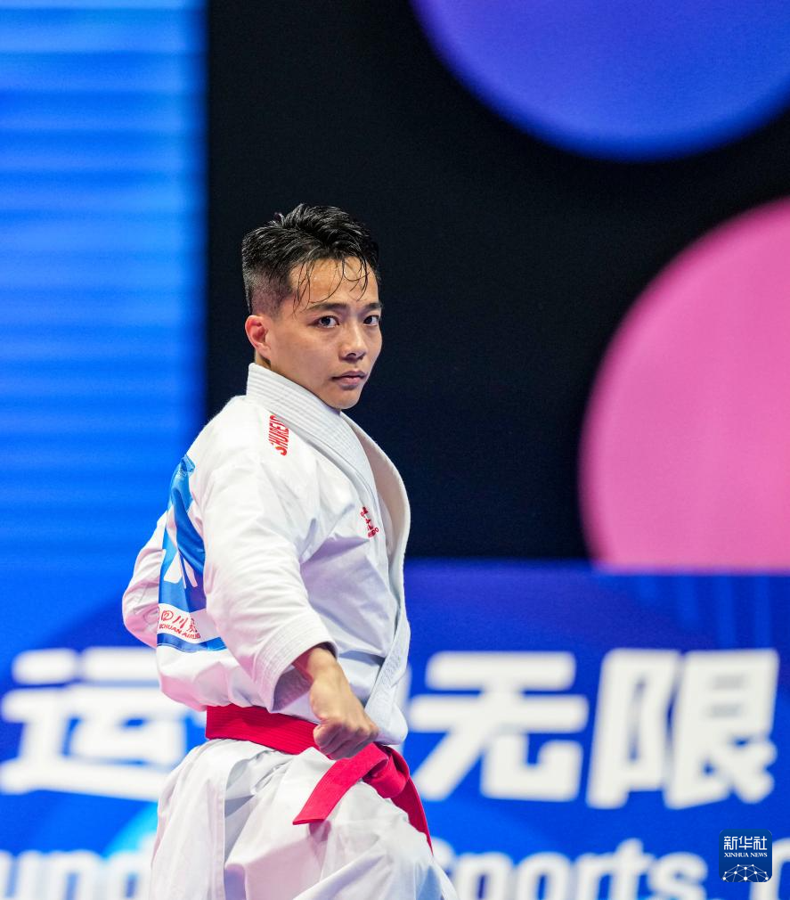 当日,2025年成都世运会空手道男子型小组赛在简阳文体中心体育馆举行。