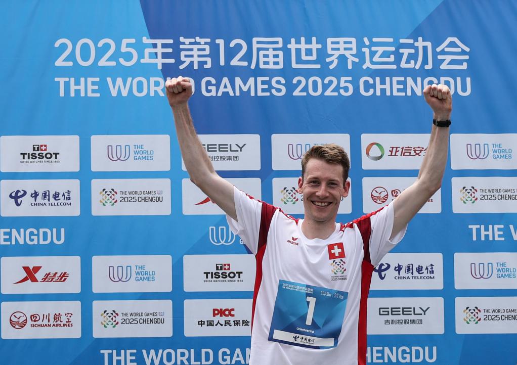 新华社成都8月8日电 (记者刘旸、田光雨、陈地)成都世运会首金得主、瑞士徒步定向选手里卡尔多·兰坎有一份兼职工作——机器人软件工程师。