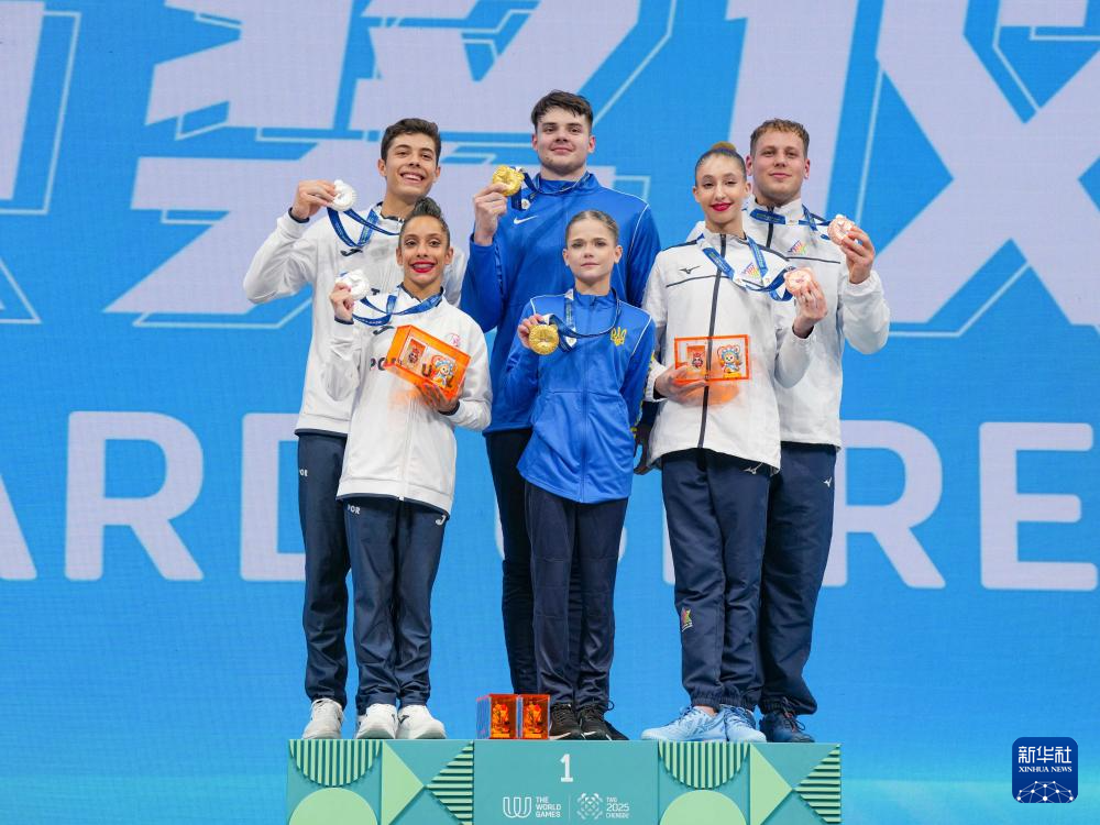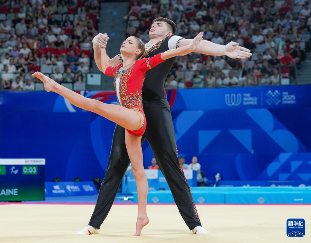 当日,2025年成都世运会技巧混合双人决赛举行,乌克兰组合获得冠军,葡萄牙组合获得亚军,以色列组合获得季军。