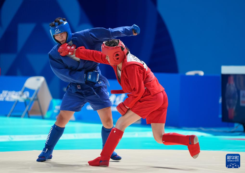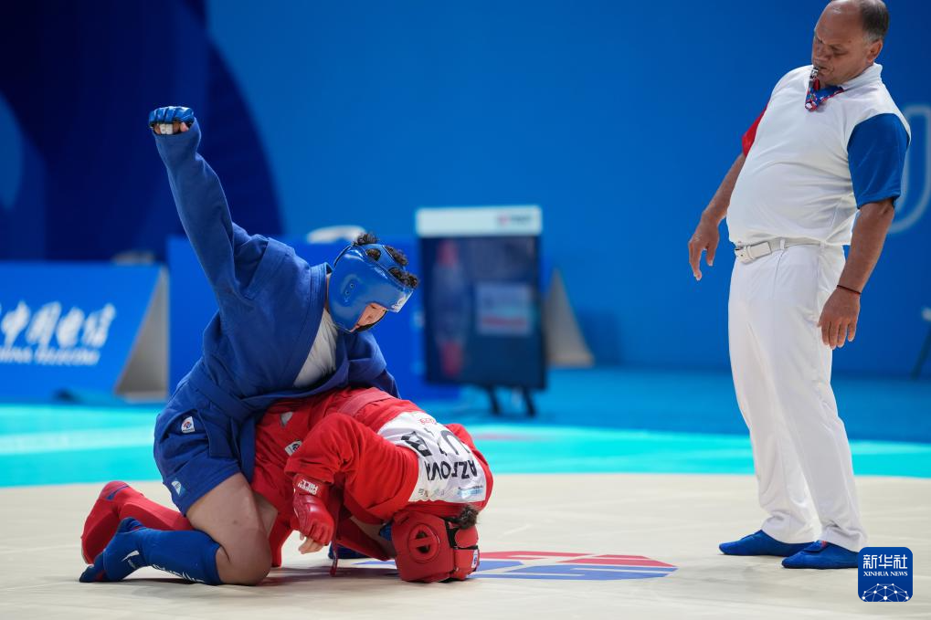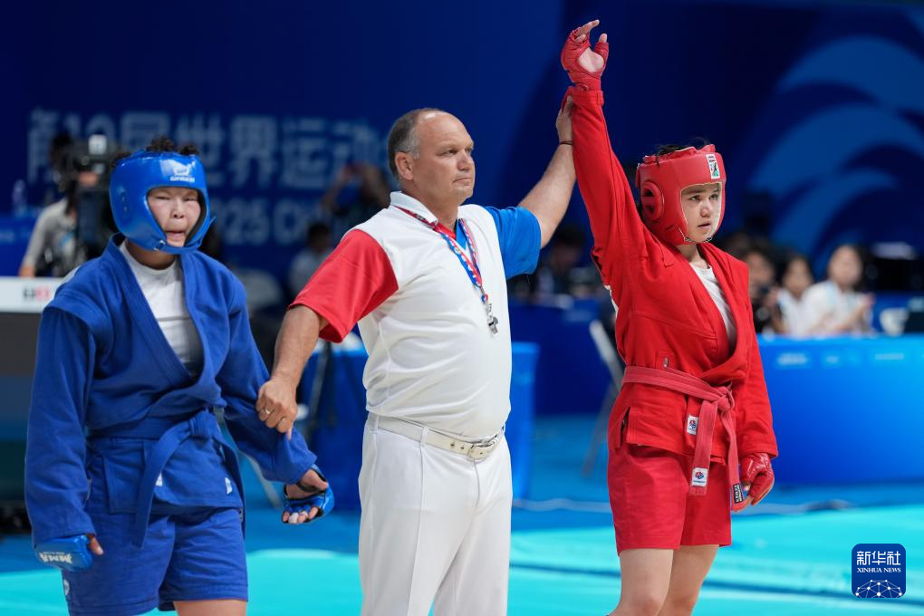 当日,在2025年成都世运会桑搏女子格斗59公斤级金牌赛中,乌兹别克斯坦选手沙赫佐达战胜蒙古国选手恩赫巴特尔,获得冠军。
