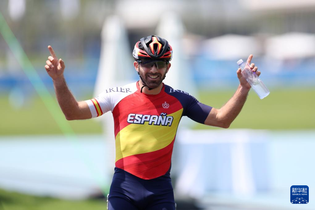 8月13日,获得冠军的西班牙选手古斯曼庆祝胜利。