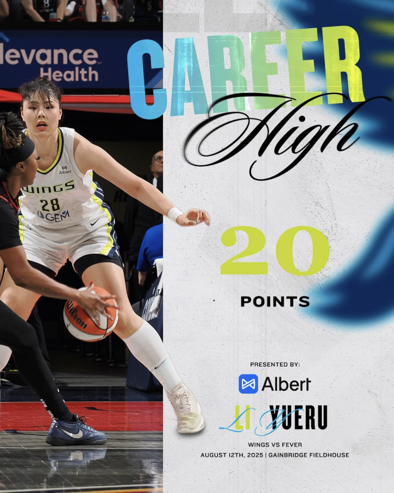 此前李月汝在WNBA的单场得分纪录是19分,是上赛季她效力于洛杉矶火花队时创造的。本场面对狂热队,李月汝14投7中得到20分,此外还有4个篮板和2次抢断。