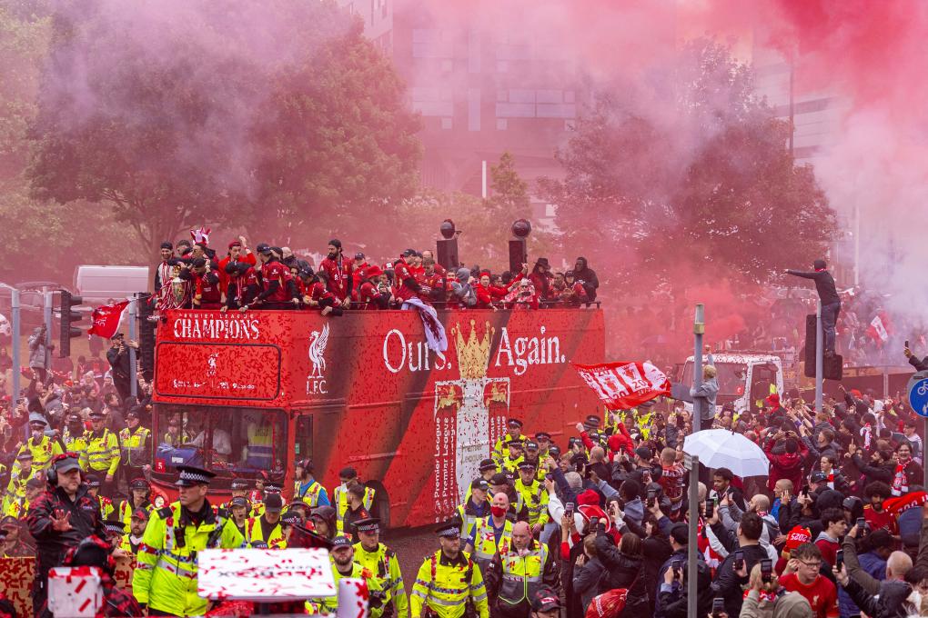 5月26日,赢得2024-2025赛季英超冠军的利物浦队在英国利物浦举行庆祝游行。新华社发