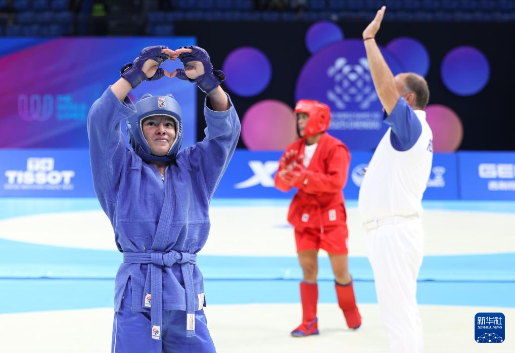当日,在2025年成都世运会桑搏女子格斗54公斤级金牌赛中,乌兹别克斯坦选手古塞维尔战胜委内瑞拉选手坎波斯,获得冠军。