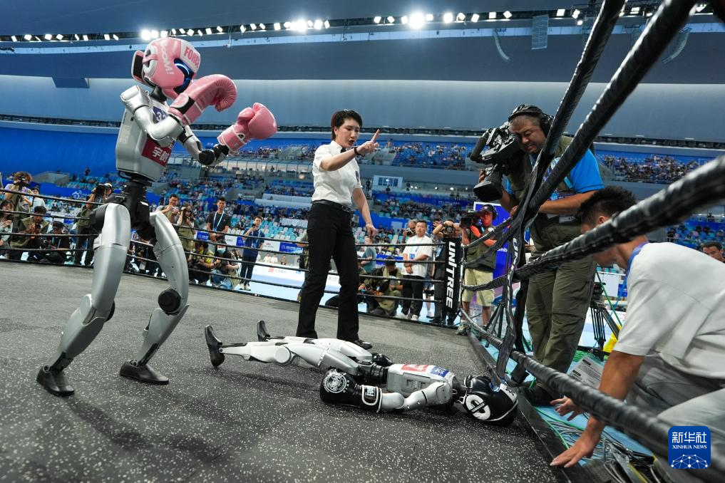 记者在赛事现场看到,有的机器人健步如飞;有的机器人“身负轻伤”仍坚持比赛,被赞具有奥林匹克精神;有的机器人技法如行云流水,轻松带球过“人”;有的机器人输掉拳击比赛后“不服气”,挥拳表示“再战”……