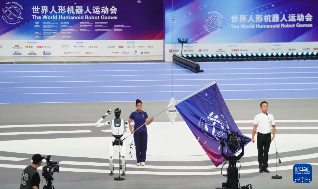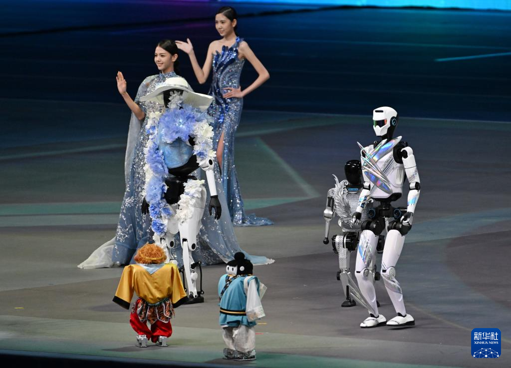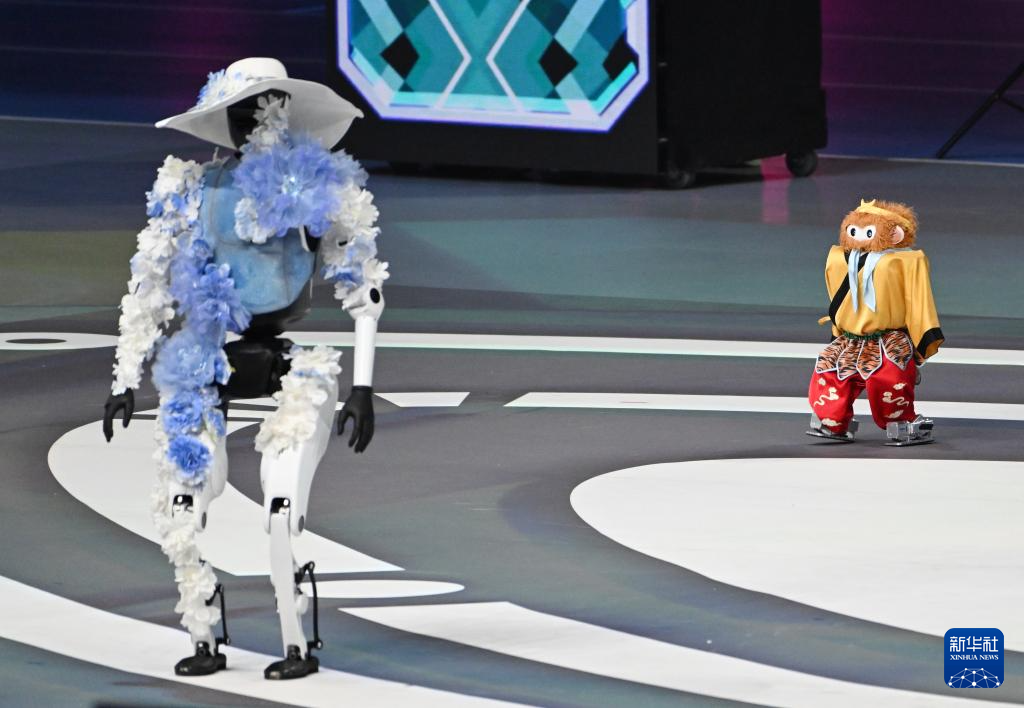 当日,2025世界人形机器人运动会在北京国家速滑馆“冰丝带”开幕。