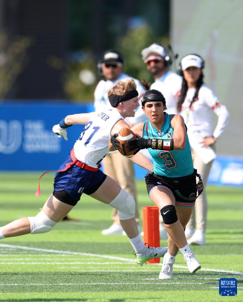 当日,在2025年成都世运会腰旗橄榄球女子预赛B组中,墨西哥队战胜英国队。