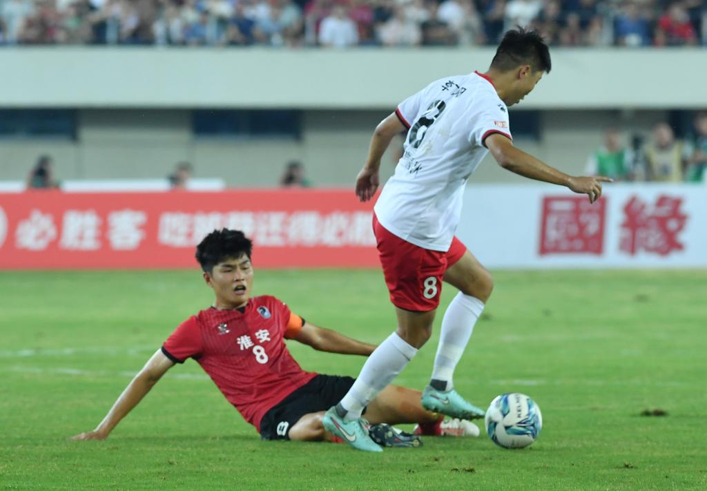 7月6日,江苏省城市足球联赛第六轮,淮安队主场0:0战平常州队。新华社发(刘臻睿摄)