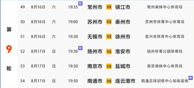 江苏省城市足球联赛第九轮对阵表