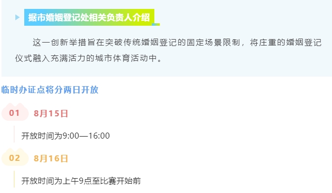 婚姻登记处在赛场外设立临时办证点