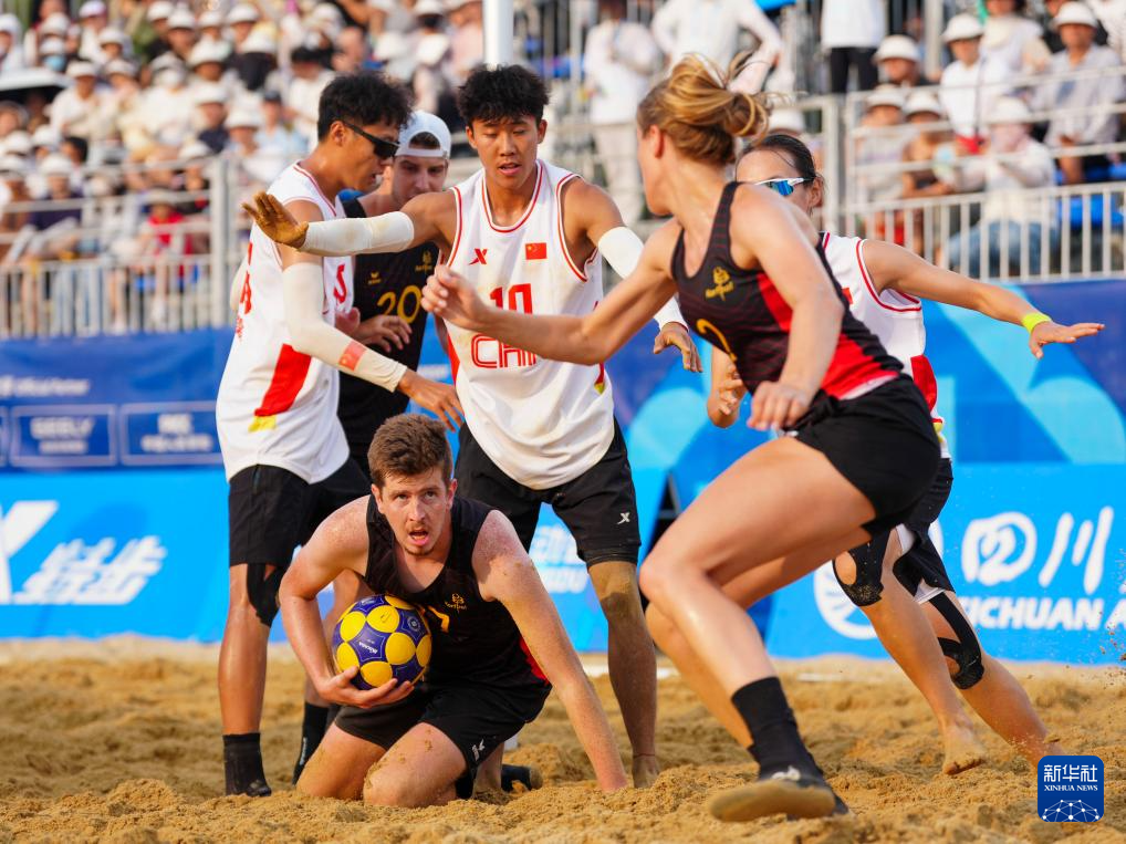 当日,在2025年成都世运会沙滩荷球混合团体赛四分之一决赛中,中国队不敌比利时队。