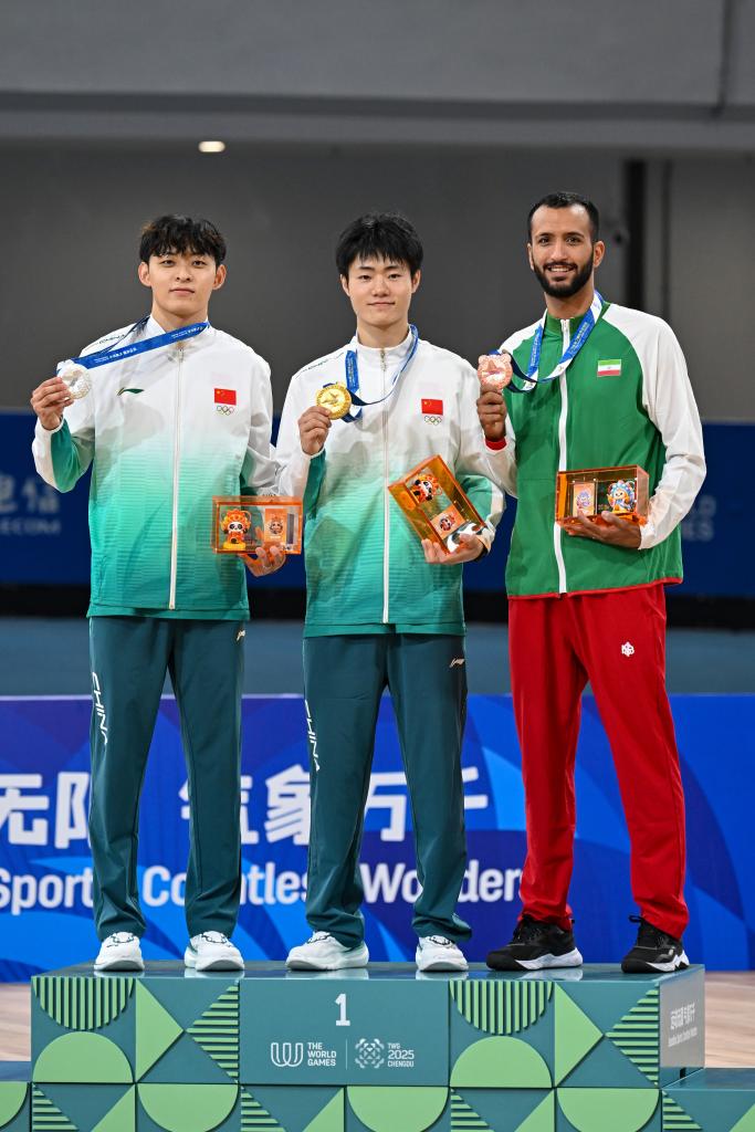 “我非常激动和开心,能够在比赛中发挥出自己正常的水平。作为成都人,在家门口参加世运会,其实我感觉有些紧张。”赛后张颢说,“好在决赛是面对队友,我们彼此很熟悉,也为中国队锁定了金银牌,所以没有太大压力,就是正常发挥,至于是谁最终能够获胜,其实也有运气的成分在。”