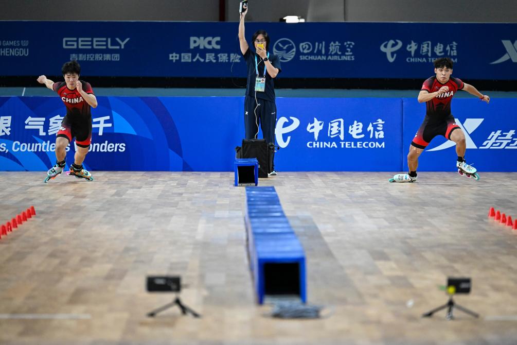 新华社成都8月16日电(记者刘扬涛、肖亚卓)在16日结束的成都世运会自由式轮滑男子、女子速度过桩比赛中,中国队收获一枚金牌、两枚银牌和一枚铜牌。