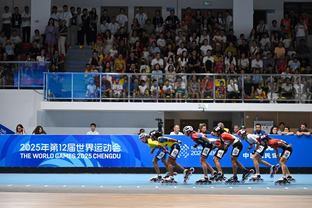 世运会速度轮滑场地赛在成都轮滑运动中心进行,赛场边观众的呐喊声、欢呼声此起彼伏。场地负责人介绍,速度轮滑项目自开赛以来几乎场场座无虚席,群众观赛热情很高。每场300多张的比赛门票基本上一放出来就被抢购一空,可谓“一票难求”。