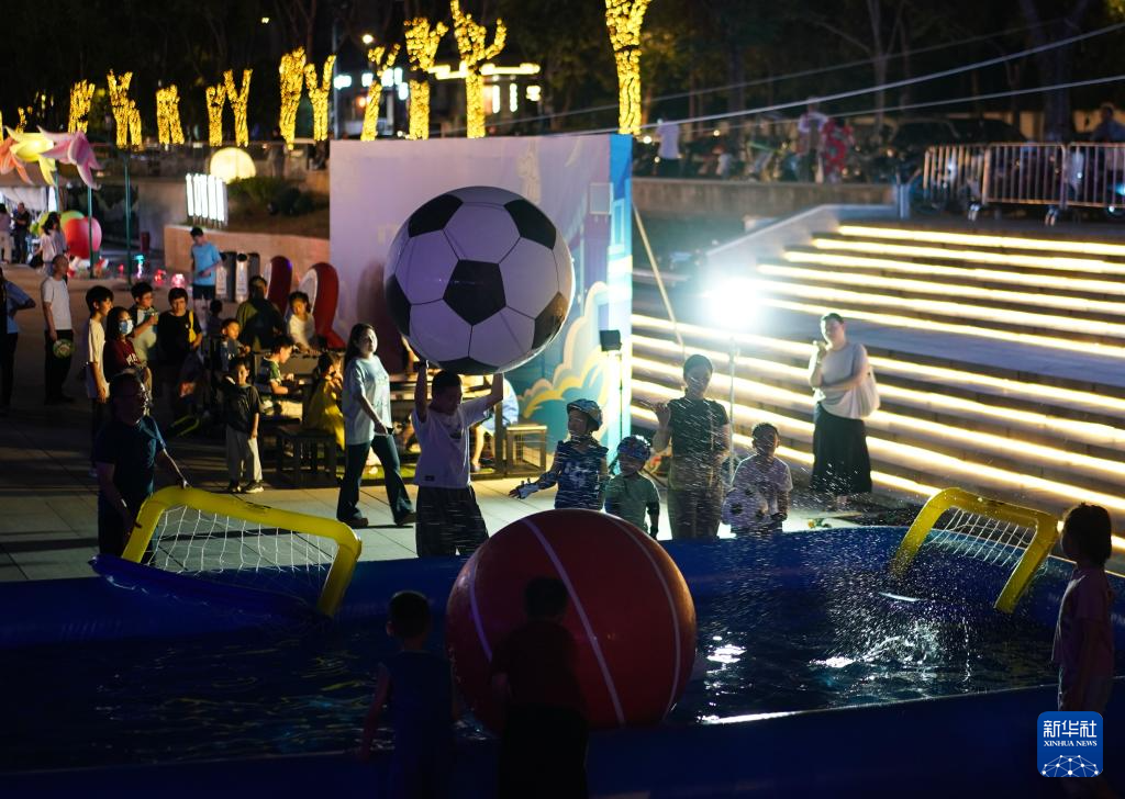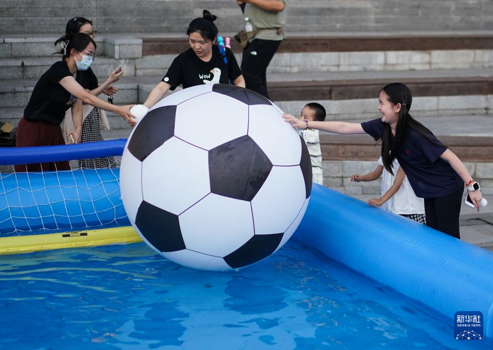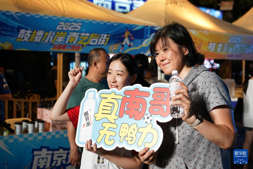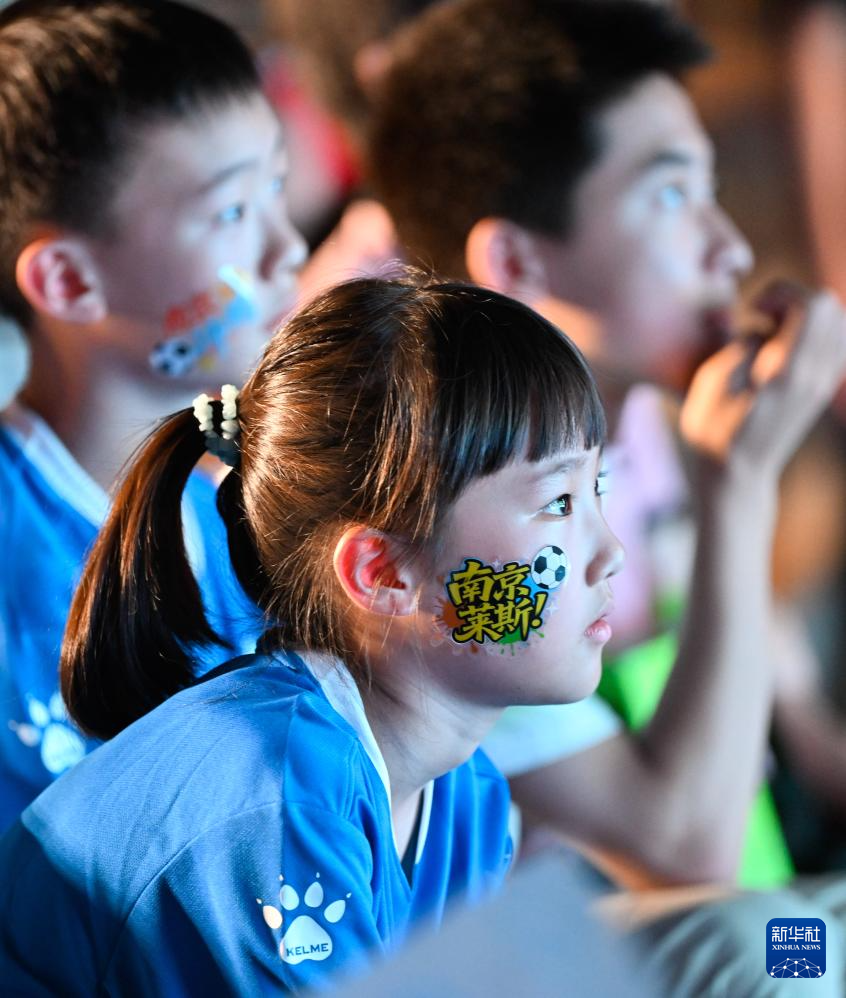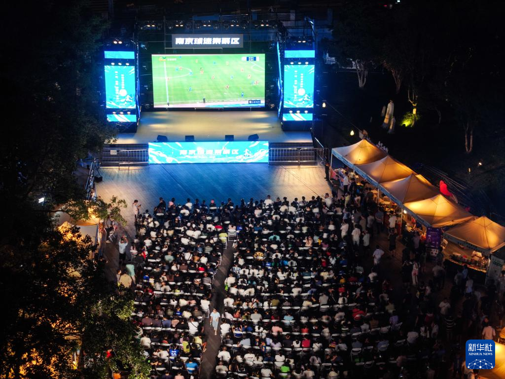 当日,在江苏南京举行的2025江苏省城市足球联赛第九轮比赛中,南京队对阵盐城队。南京市在部分商场、街区等地设置观赛“第二现场”,使用大屏幕同步直播赛事,同时设有游戏互动区、烟火市集区,让球迷们度过欢乐时光。