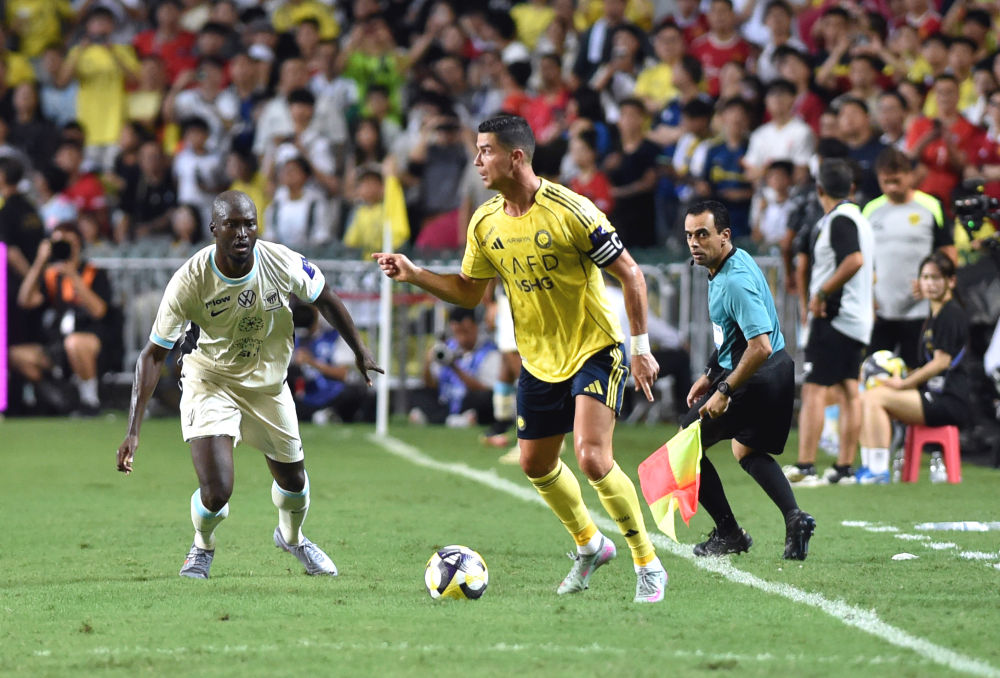 8月19日,利雅得胜利队球员克·罗纳尔多(前右)在比赛中。新华社发(卢炳辉摄)