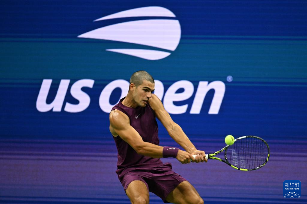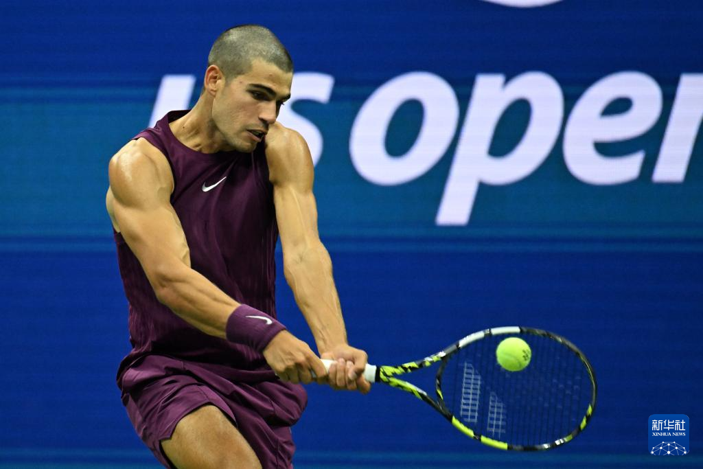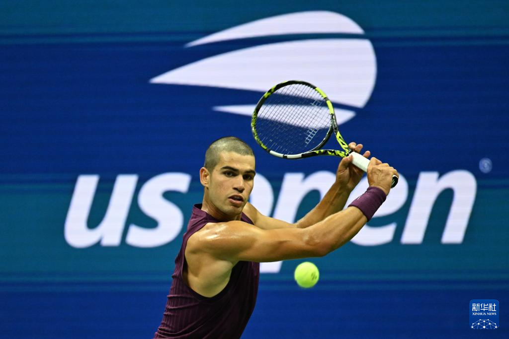 8月25日,阿尔卡拉斯在比赛中回球。