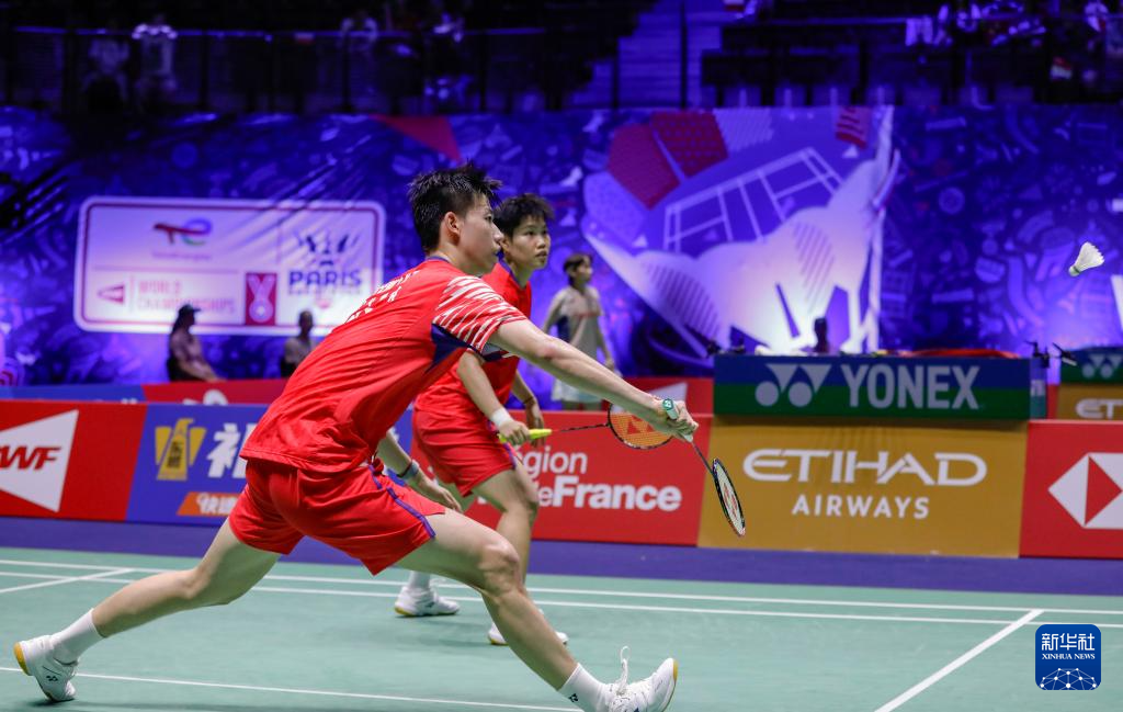 8月27日,中国组合冯彦哲/黄东萍(右)在比赛中。新华社记者 张帆 摄