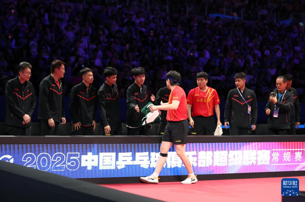 当日,在新疆乌鲁木齐市举行的2025赛季中国乒乓球俱乐部超级联赛常规赛第三阶段男子团体比赛中,山东魏桥·向尚运动队3比0战胜中超电缆·福建安井队。